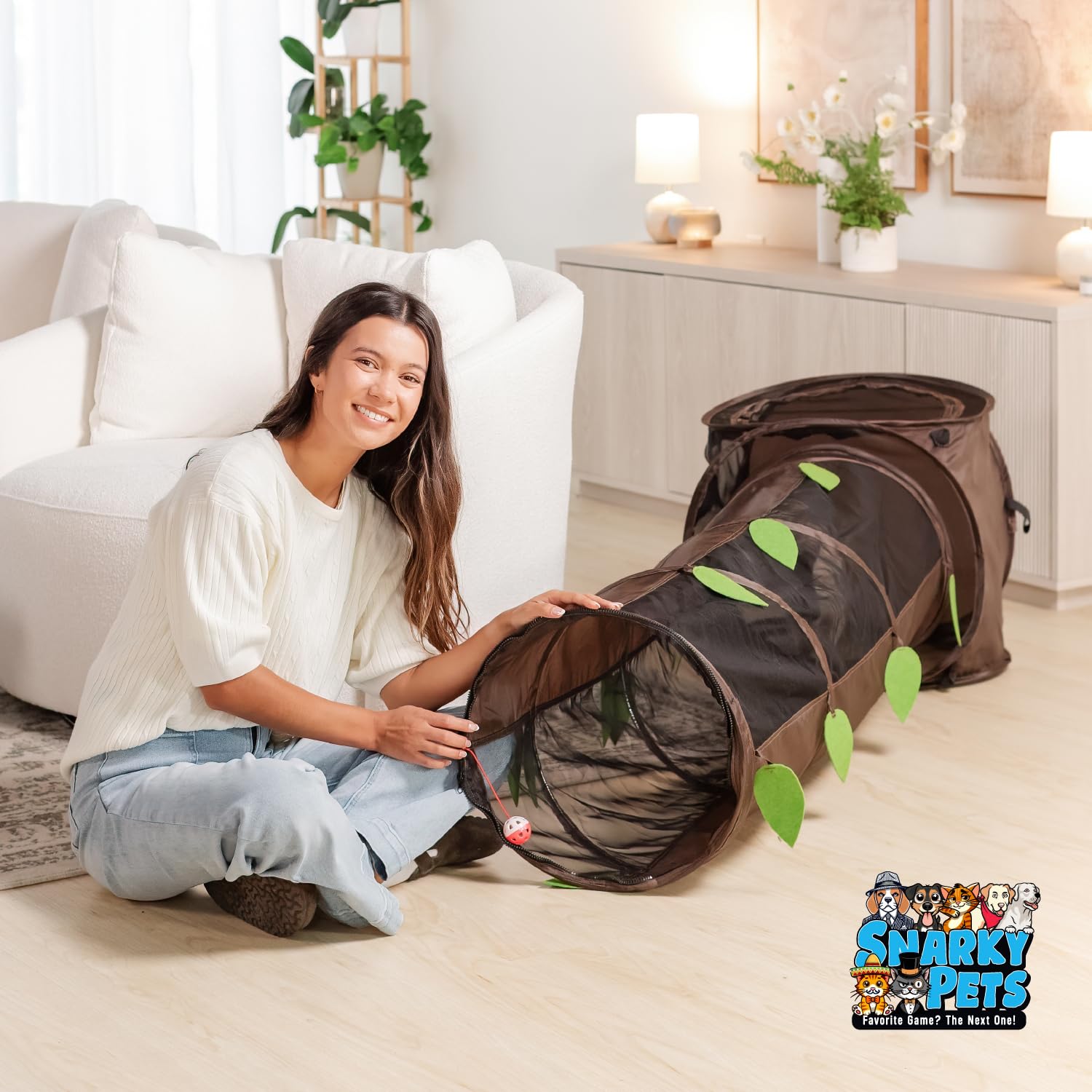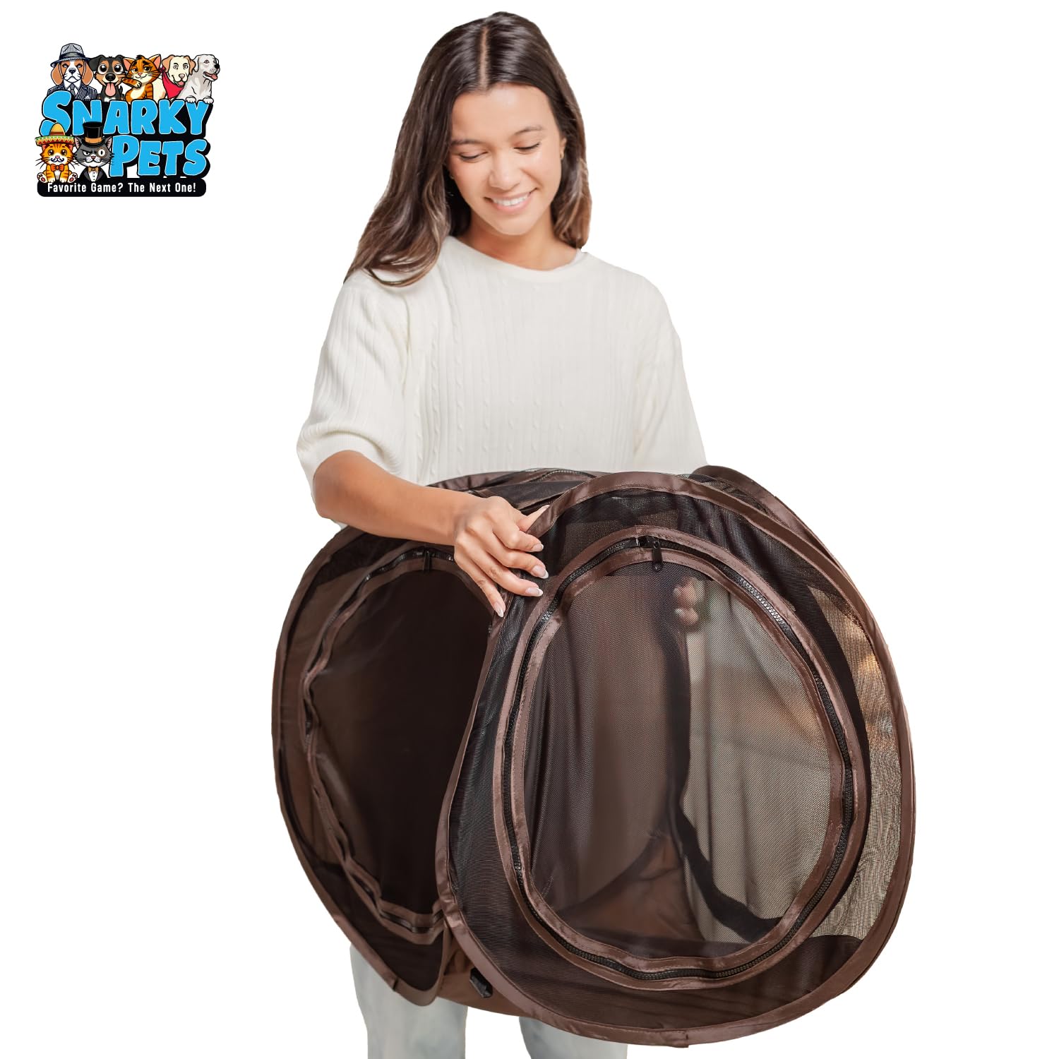 - Connects Seamlessly to The Snarky Pets Timmy and Mister's Cat Tunnel with Zippers.